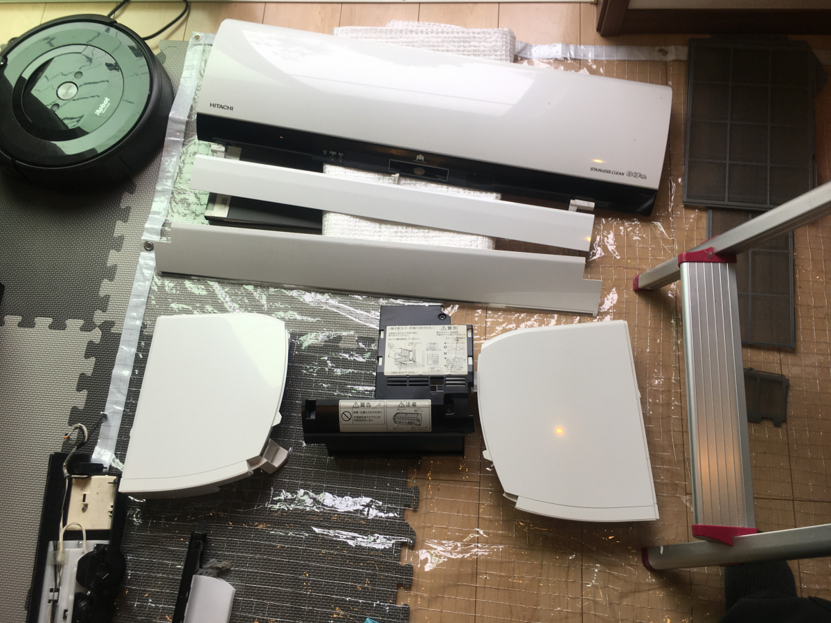 お掃除機能付きエアコン、だいぶ数をこなしてきているので本日は分解経験のある型だったので