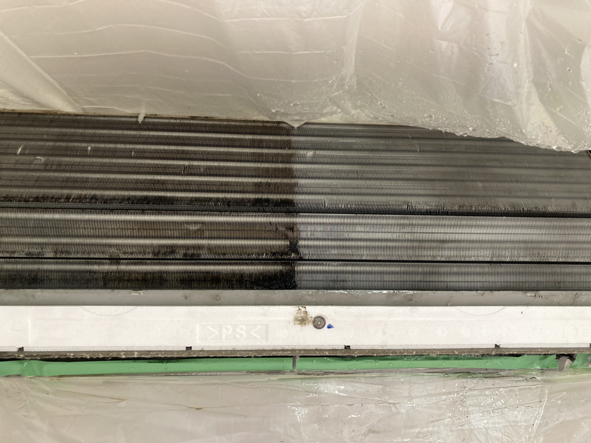熱交換器も作業の効果がわかりやすい状態になるほど汚れがありました〜